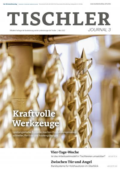 Das Tischler Journal ist das österreichische Monatsmagazin für die gesamte Tischlerbranche. Es vermittelt anwendbares Wissen für den unternehmerischen Erfolg im Handwerk. In aktuellen Meldungen, Fachberichten und Serviceinformationen informiert das Magazin praxisorientiert über Themen und Trends aus den Bereichen Wirtschaft, Technik, Materialien, Design, Maschinen und Werkzeuge.